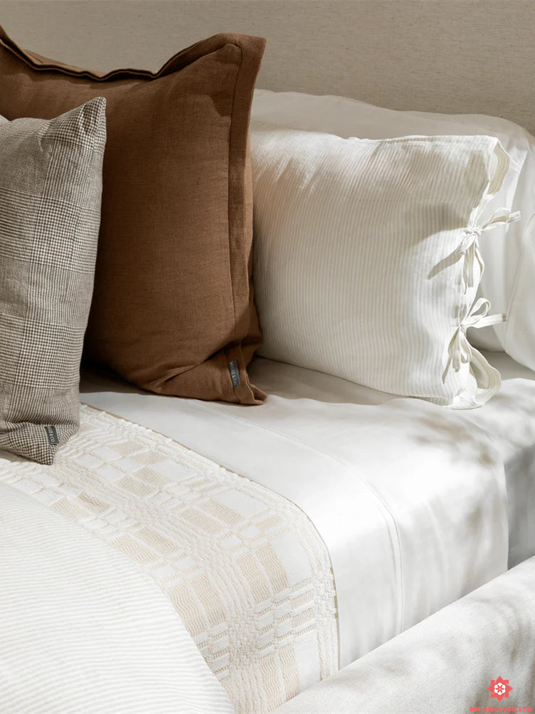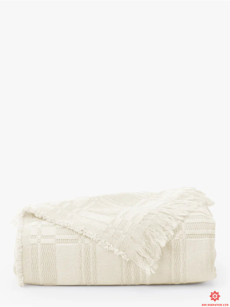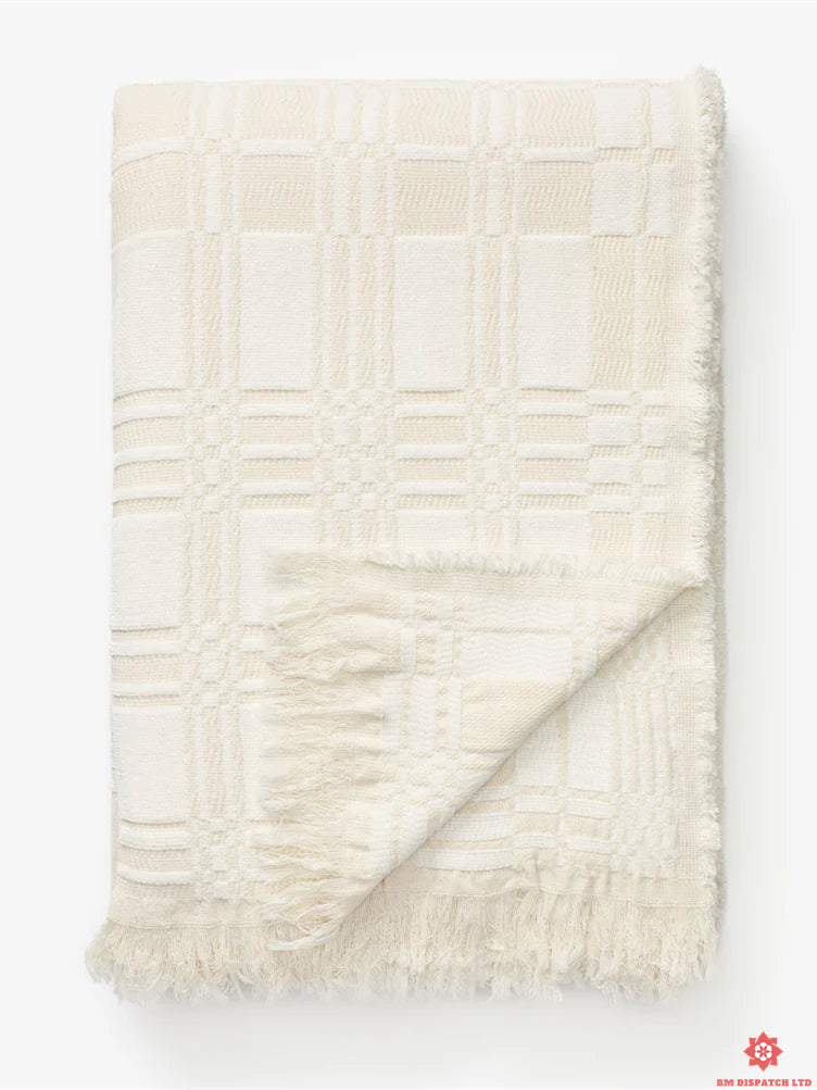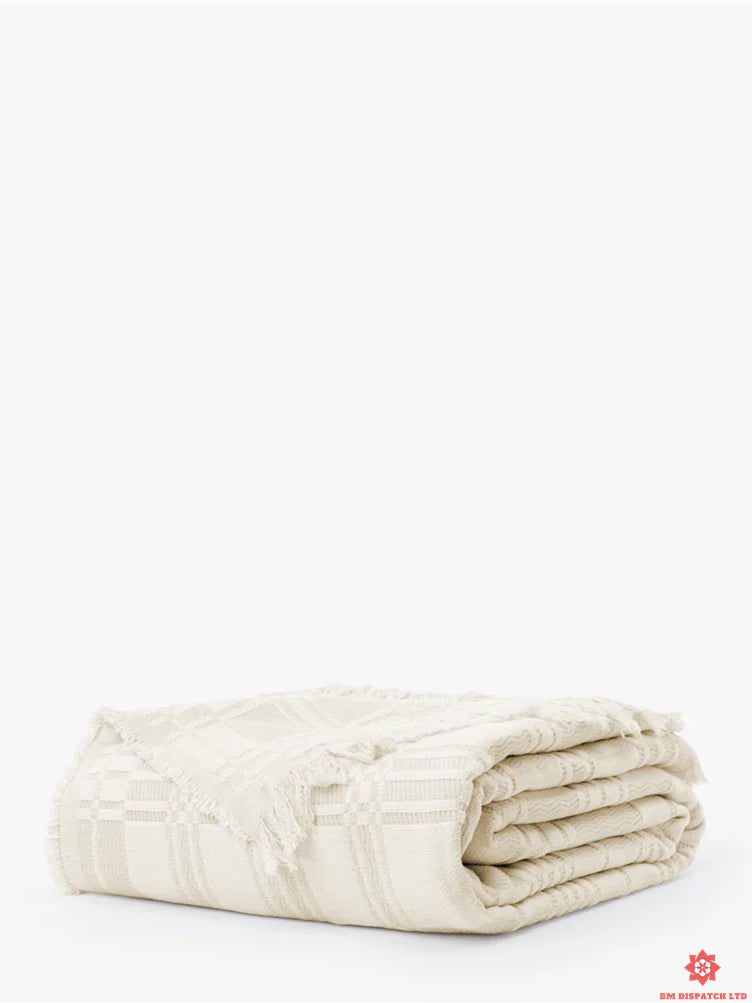 The Mallory bedspread is crafted from a neutral cream cotton blend, adding a relaxed, comfortable touch to your bedding. Expertly crafted for comfort and durability, this cotton blanket exudes a timeless beauty.