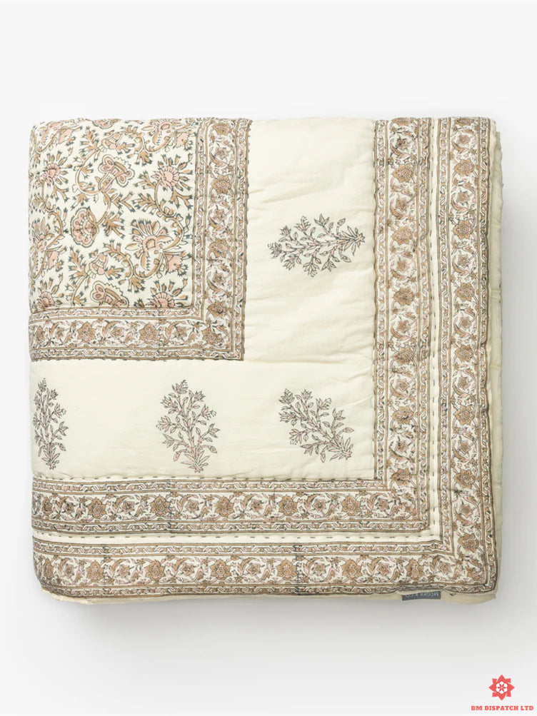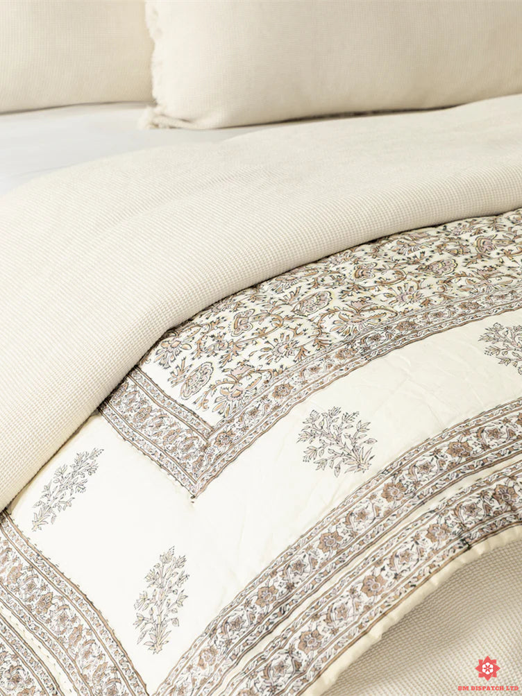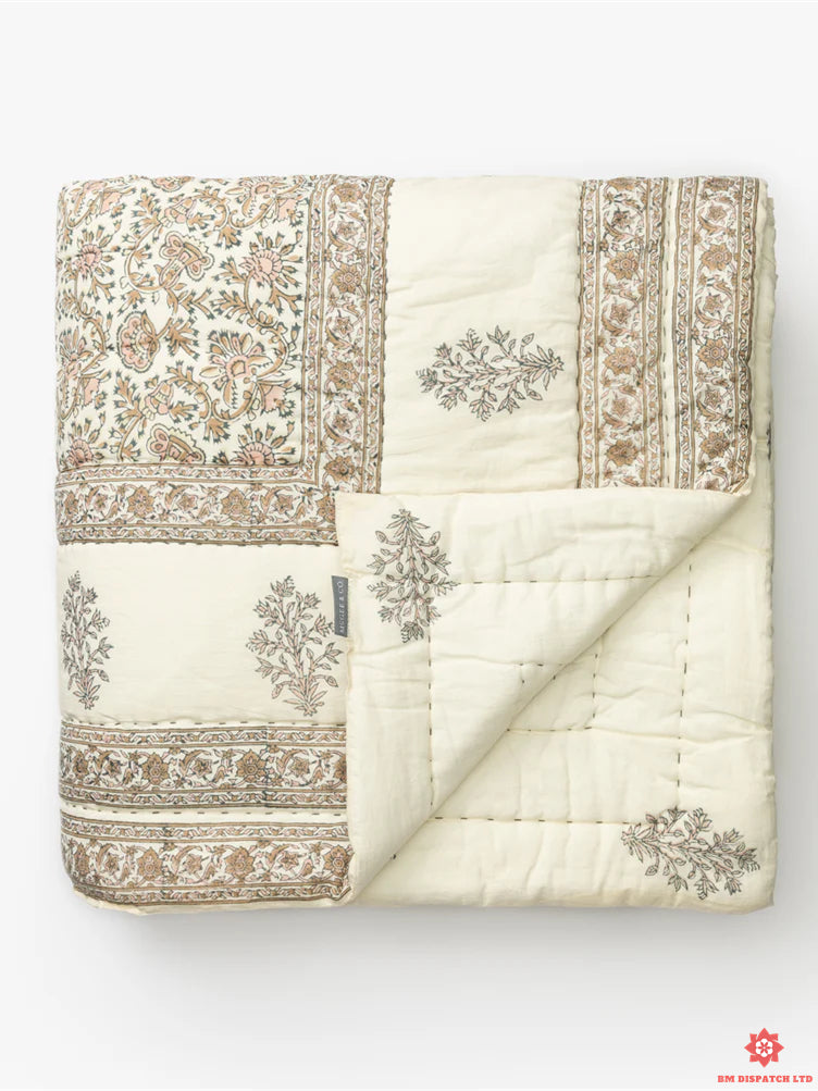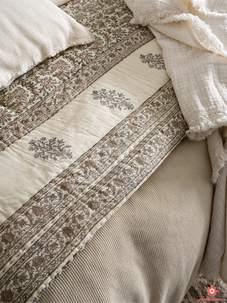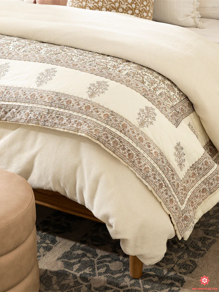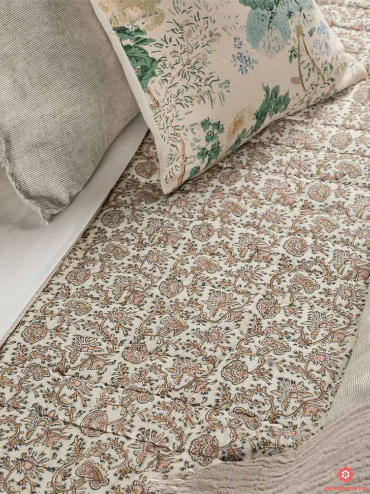 Tweak Quilt is a romantic bedding set featuring a beautiful woodblock print. Crafted from 100% cotton, the delicate, warm pattern lends it visual texture and elegance, complementing any bedding set. Every detail of this woodblock quilt showcases exquisite craftsmanship.