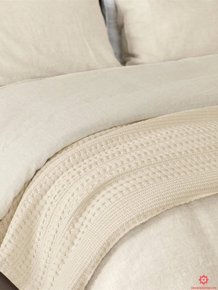 The Wakefield Waffle Blanket features a soft waffle weave, crafted from 100% cotton by master weavers in Portugal. This waffle blanket comes in a warm, soft ivory shade that blends beautifully with other textiles.